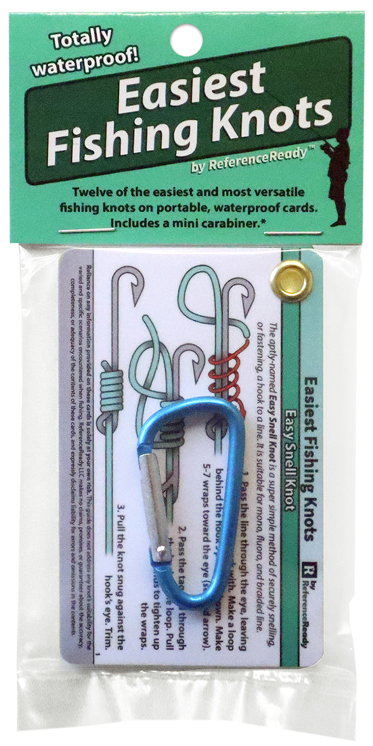 A portable, waterproof guide covering 12 of the simplest and most versatile fishing knots for freshwater, saltwater, and fly fishing scenarios. Designed for beginners, scouts, and anyone looking to learn practical fishing knots quickly. Color-coded diagrams make every step easy to follow. Includes a mini carabiner.